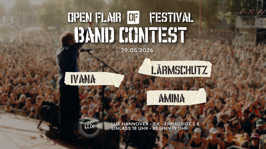 In den vergangenen zwei Wochen habt ihr fleißig gevotet (Danke!) und folgende Bands spielen beim Open Flair Bandcontest am 29. Mai 2026 (Einlass 18:00 / Beginn 19:00) im LUX Hannover